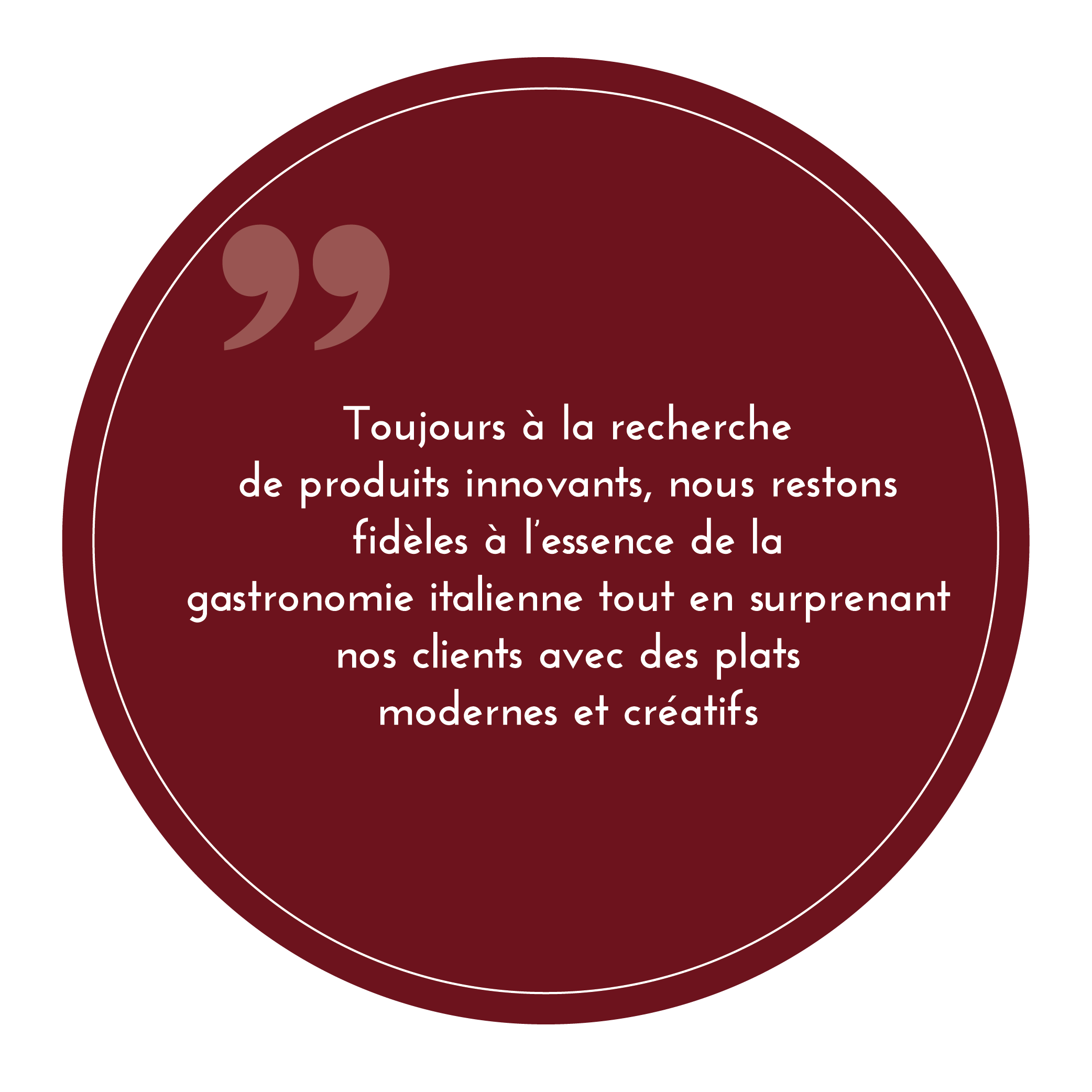 Avec notre savoir nos vous préparons des plats à base de produits italiens frais et de qualité ! Nous mettons un point d’honneur à vous servir des produits fait maison. Cela s’accompagne d’un service irréprochable toujours avec le sourire !